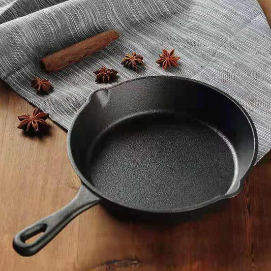 Black Cast Iron Skillet – Durable Flat Bottom Frying Pan for Perfect Searing & Versatile Cooking